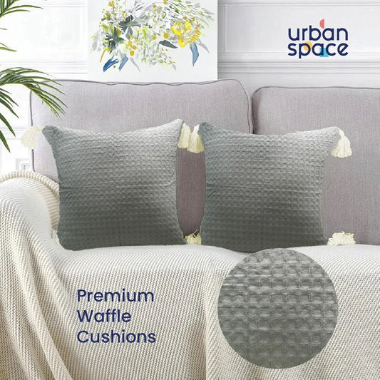 Urban Space Waffle Cotton Cushion Cover Set of 2 Cushion Covers for Sofa, Bedroom, Living Room Waffle Cool Grey