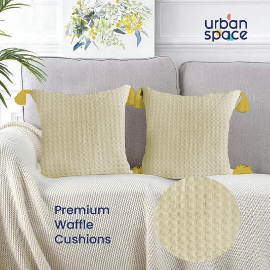 Urban Space Waffle Cotton Cushion Cover Set of 2 Cushion Covers for Sofa, Bedroom, Living Room Waffle Beige