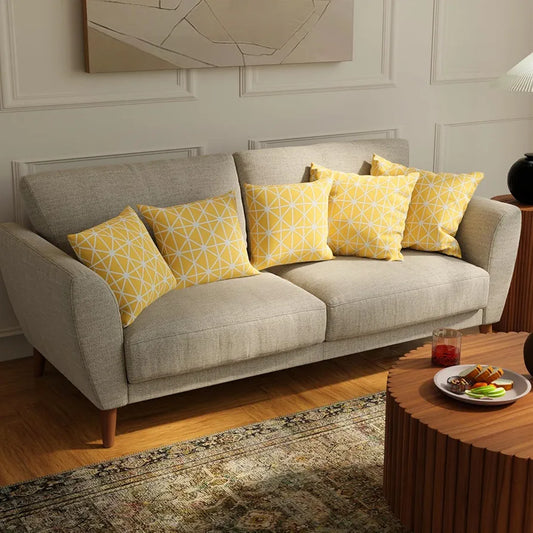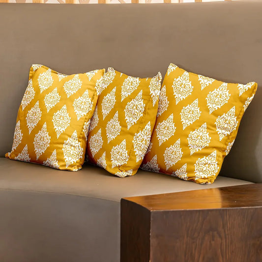 Urban Space Decorative Cotton Cushion Cover Set of 3 Cushion Covers for Sofa, Bedroom, Living Room Motif Mustard
