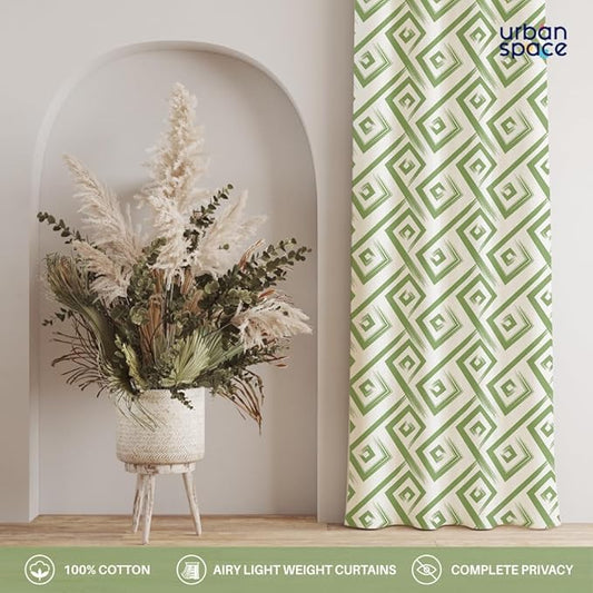 Urban Space Cotton Curtains for Door Bedroom Home Decor Pack of 2 Curtain with Eyelets and Tieback (Colour Basics Green)