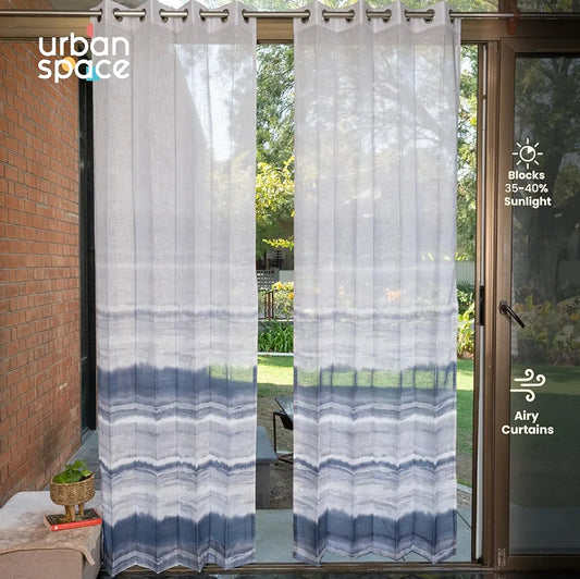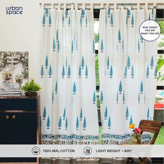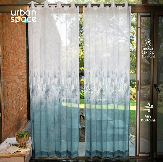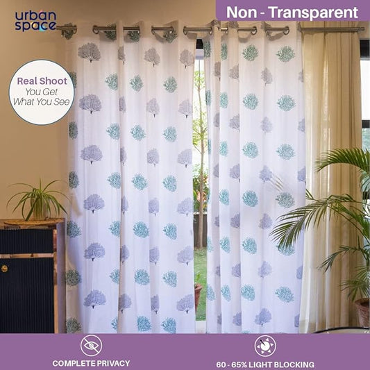 Urban Space Cotton Semi Sheer Curtains For Door Set Of 2 With Eyelets And Tieback (Colour Panel Jungle Blue)