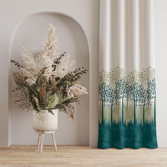 Urban Space Printed Sheer Curtains for Long Door 8 feet Light Filtering Textured Decorative Curtains with Eyelets and TieBack for Living Room, Set of 2 Curtains Flora Nova Sage Green Sheer