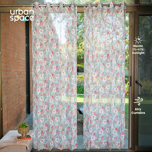 Urban Space Printed Sheer Curtains for Door 7 feet Light Filtering Textured Decorative Curtains with Eyelets and TieBack for Living Room, Set of 2 Sheer Curtains Flora Nova Grey Sheer