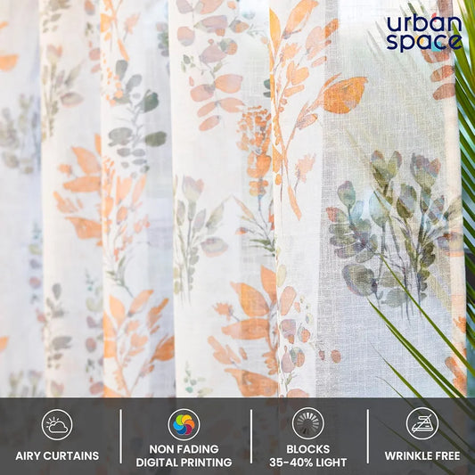 Urban Space Sheer Curtains for Door Light Filtering Linen Textured Curtains with Eyelets and TieBack for Bedroom, Set of 2 Decorative Curtains Classic Floral