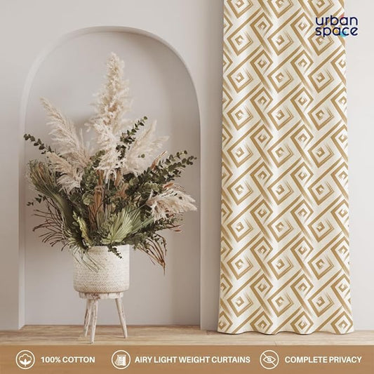 Urban Space Cotton Curtains for Door Pack of 2 Curtain with Eyelets and Tieback (Clour Basics Beige)