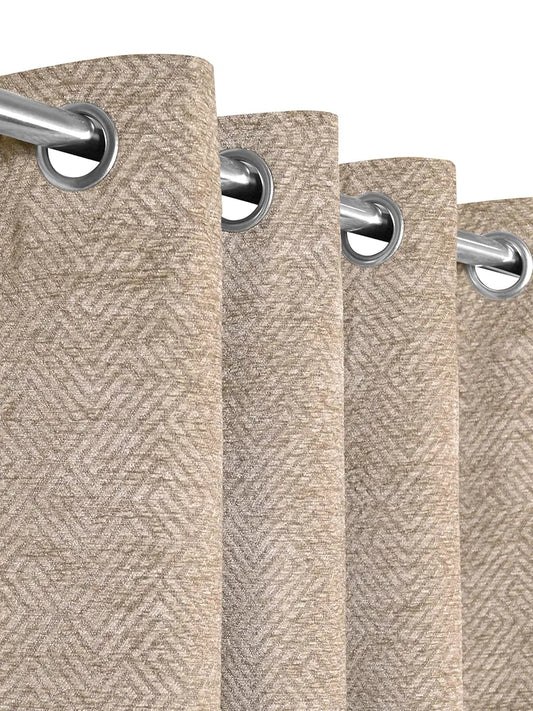 Saral Home Beige Pacman Chenille & Polyester Chevron Yarn Room Darkening Door & Windows Curtains (Pack of 2)