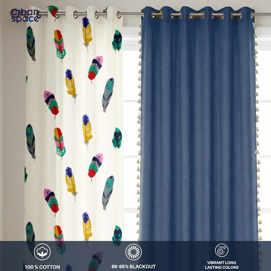 Urban Space Cotton Curtains for Door Combo Set of 3 Curtains Room Darkening Curtain for Home Decor Owl Orchid Blue & Aura Indigo