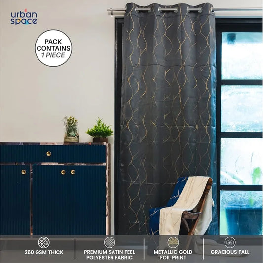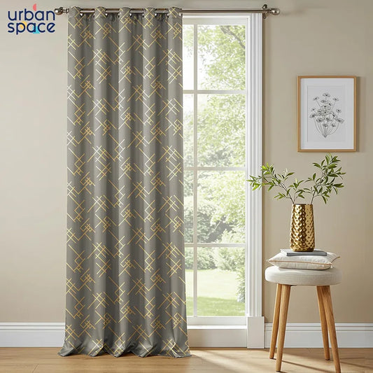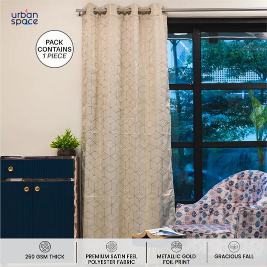 Urban Space Blackout Curtain for Living Room, Gold Foil Printed Blackout Decorative Curtain, Eyelet with Tieback Curtains 1 Piece Hex Beige Colour