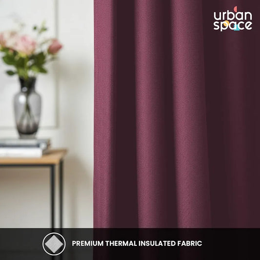 Urban Space 100% Blackout Curtains for Window 5 Feet Set of 2, Thermal Insulated Curtains with Eyelets and Tiebacks, Solid Curtain Mauve Colour