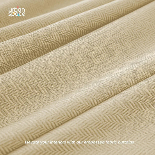 Urban Space Blackout Curtains for Door 7 Feet Long Set of 2, Embossed Herringbone DesignLight Blocking Curtain for Living Room, Curtains Drift Beige Colour