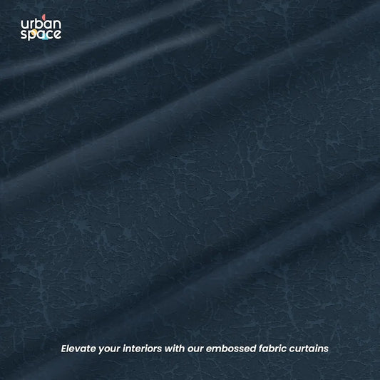 Urban Space Blackout Curtains for Door 7 Feet Long Set of 2, Embossed Abstract Design, 100% Light Blocking Blackout Curtain for Living Room, Curtains with Eyelets and Tieback Earth Crust Navy