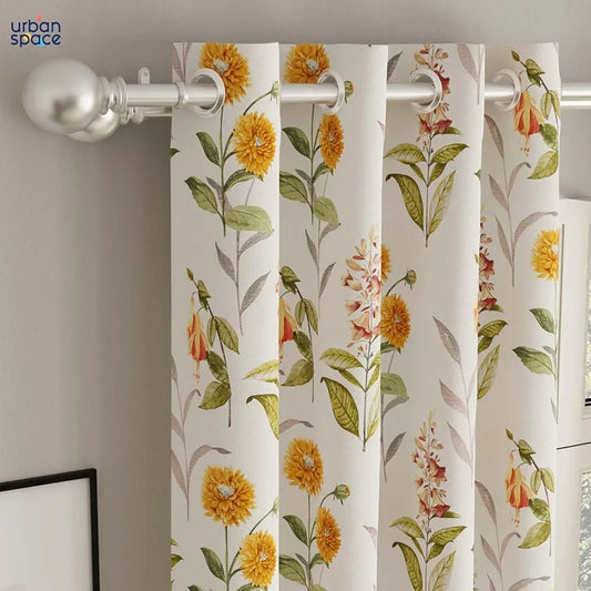 Urban Space Digital Printed Blackout Curtains for Door Bedroom Room Darkening Blackout Kids Decorative Curtains Cone Flower Yellow