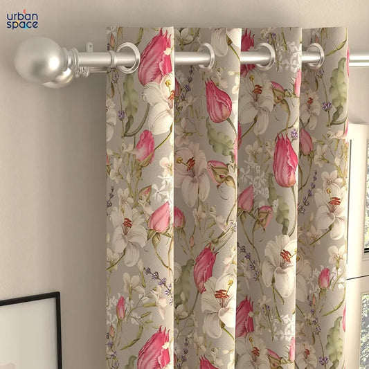 Urban Space Digital Printed Blackout Curtains for Door Bedroom Room Darkening Blackout Kids Decorative Curtains 1 Piece Curtain Cone Flower Pink