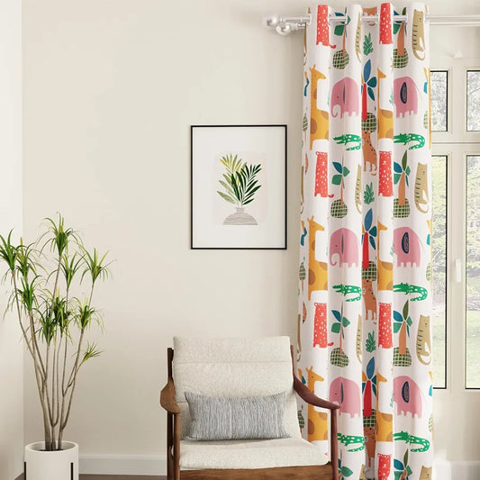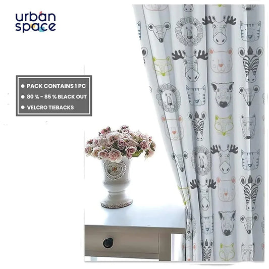 Urban Space Digital Printed Blackout Curtains for Door Bedroom Room Darkening Blackout Kids Decorative Curtains, 1 Piece Curtain Animal Kingdom
