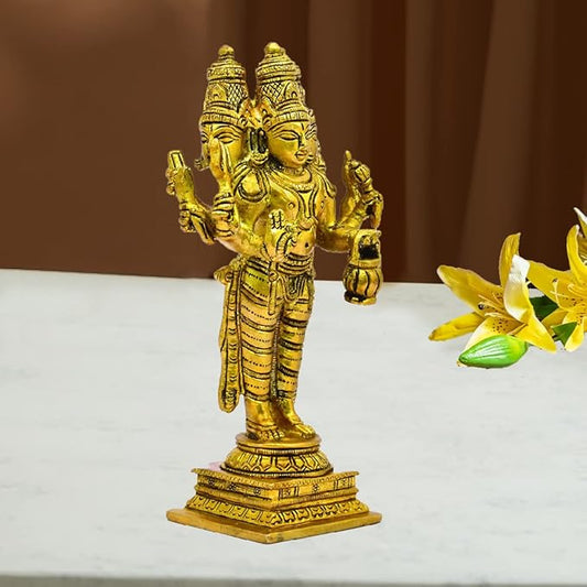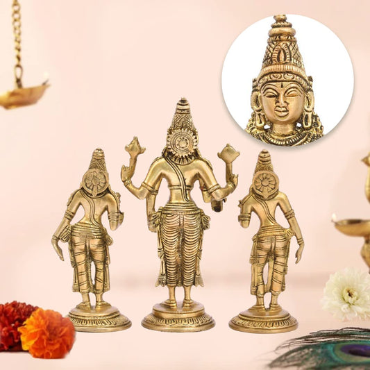 The Advitya Brass Vishnu With Bhudevi & Sridevi Statue | Set of 3 | Satya Narayan Swami Statue for Home Pooja