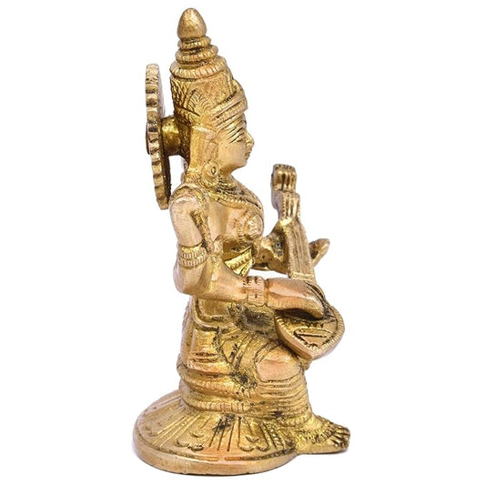 The Advitya Brass Maa Saraswati Statue | Maa Saraswati Murti/ Idol for Pooja | 4.5 Inch