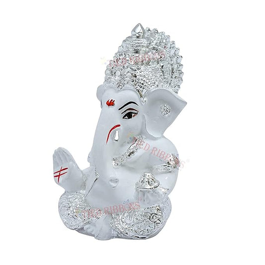 Tied Ribbons Decorative Resin Ganesh Idol for Home Decor Car Dashboard Pooja Room Living Room Office Table