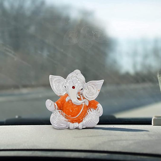 Tied Ribbons Lord Ganesh Idol for Car Dashboard Home Decor Living Room Pooja Room