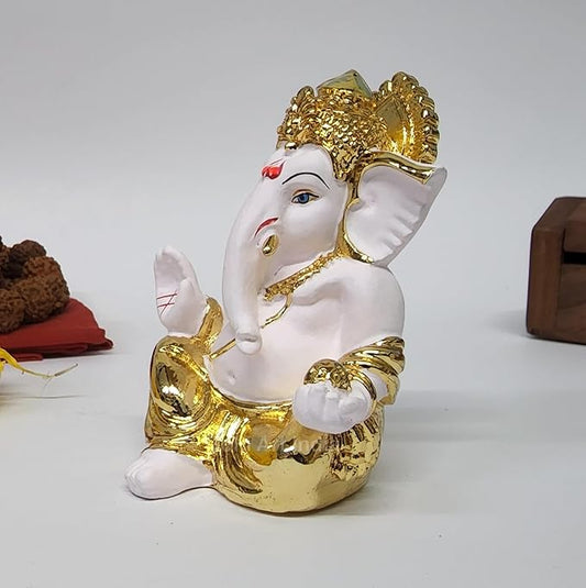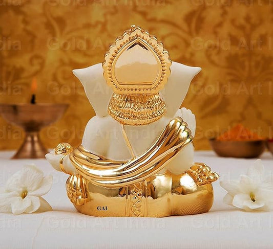 Gold Art India Gold Plated Gaddi Ganesha for Car Dashboard Home Decor Gaaddigoldwhite
