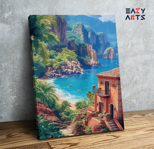 Eazy Arts Seaside Cliffs and Villa Paint by Numbers Kit