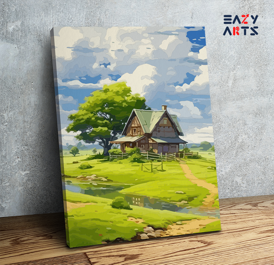 Eazy Arts Charming Cottage by the Stream Paint by Numbers Kit