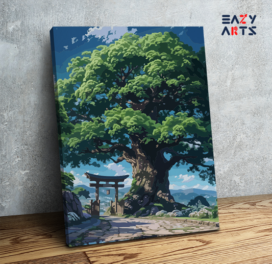 Eazy Arts Ancient Tree and Torii Gate Paint by Numbers Kit