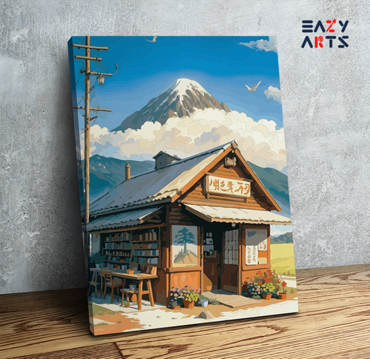 Eazy Arts Rustic Bookshop with Mountain View Paint by Numbers Kit