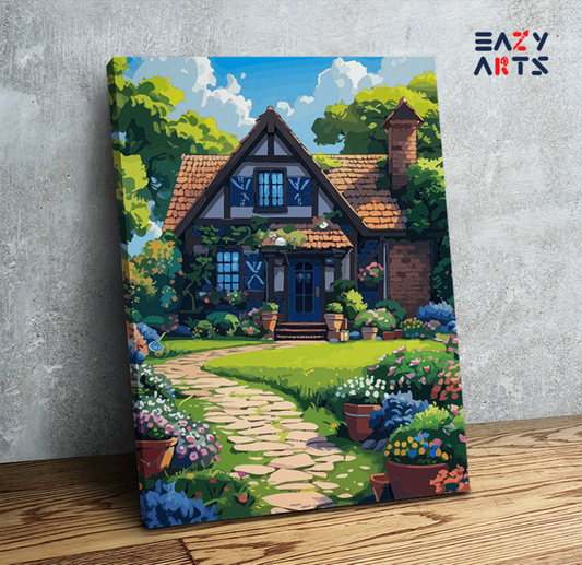 Eazy Arts Vibrant Village Cottage with Blooming Garden Paint by Numbers Kit
