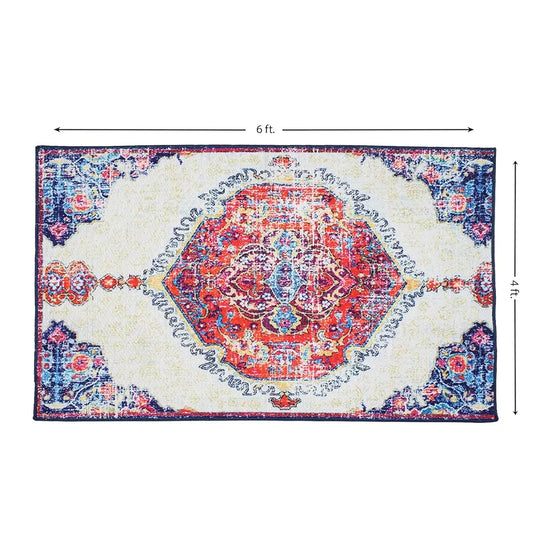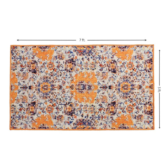 Status Contract Rugs for Living Room Printed Carpet for Living Room Decor Anti Skid Backing Home Essentials Boho Rugs for Living Room , Polyester, Multicolor, Rectangular