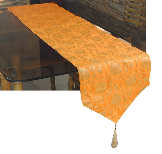 Pink Parrot-designer Jacquard Silk Table Runner Colour Orange