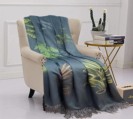 Sajavat Home Hand Knitted Pure Cotton 3 Seater Sofa Throw Colour Blue