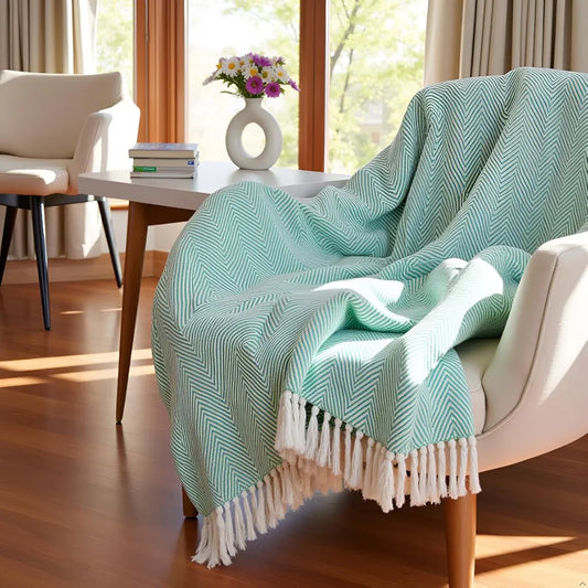 Sajavat Home Hand Knitted Pure Cotton 3 Seater Sofa Throw Colour Green