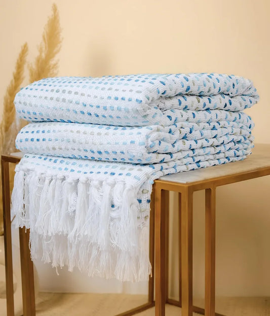 Sajavat Home Hand Knitted Pure Cotton 3 Seater Sofa Throw Colour Multi Blue
