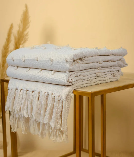 Sajavat Home Hand Knitted Pure Cotton Sofa Throw Colour Vista White