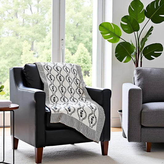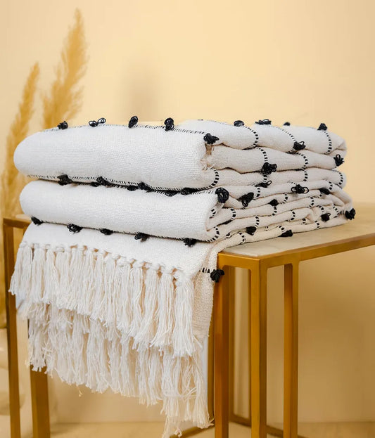Sajavat Home Hand Knitted Pure Cotton 3 Seater Sofa Throw Colour Beige & Black