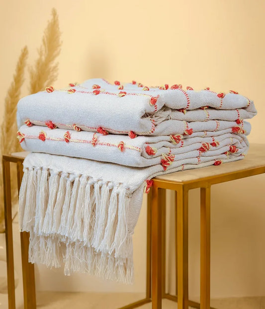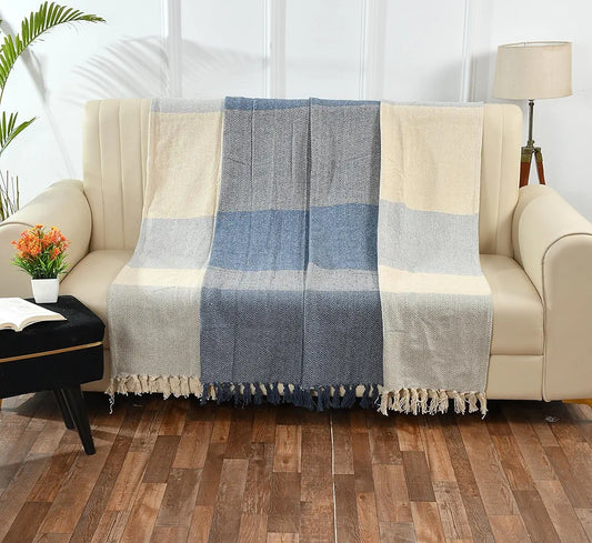 Sajavat Home Hand Knitted Pure Cotton Sofa Throw Colour Beige & Blue