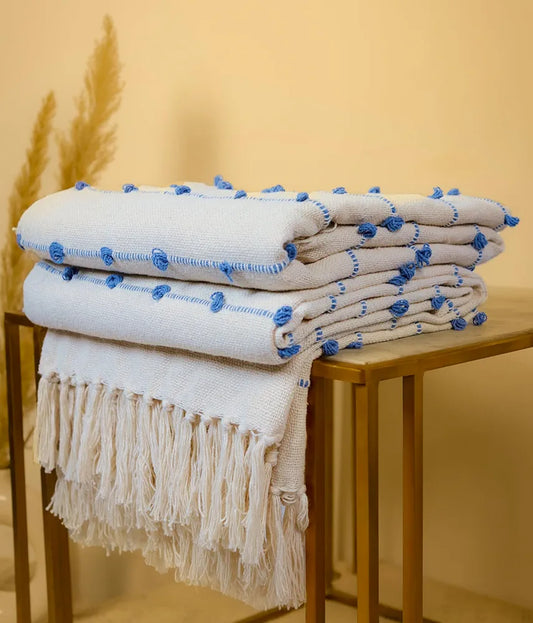 Sashaa World Blue and White Cotton Throw Colour Blue/White