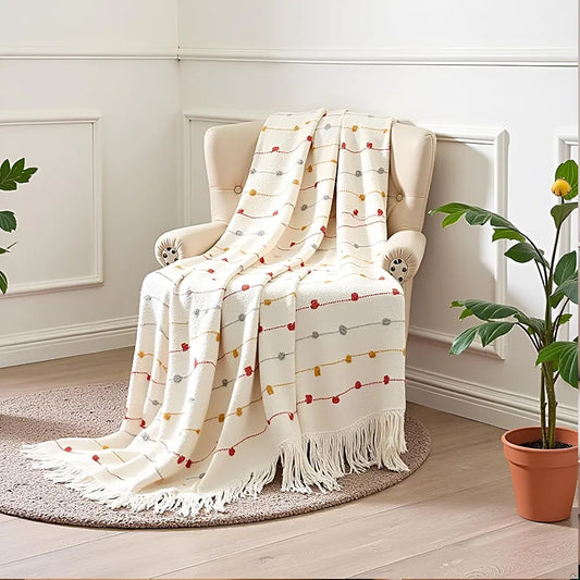 Sajavat Home Hand Knitted Pure Cotton 3 Seater Sofa Throw Colour Beige Multi