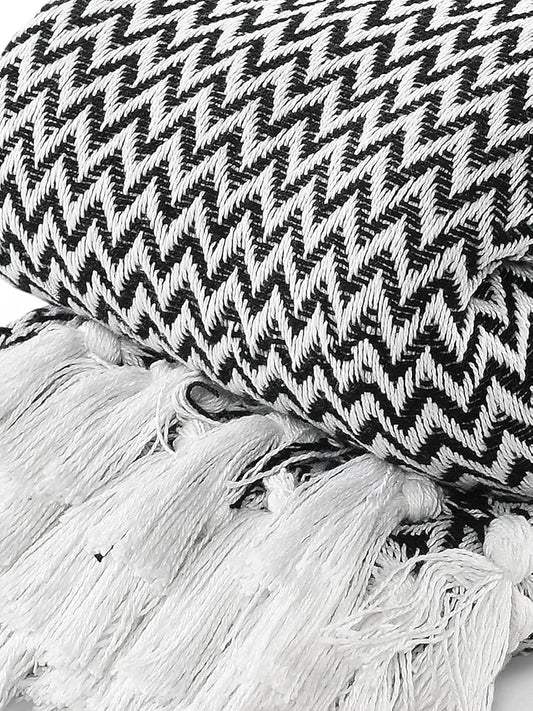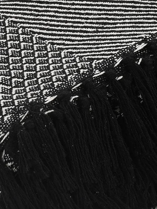 Sashaa World Chevron Throw Blanket Handwoven with Fringes Colour Black