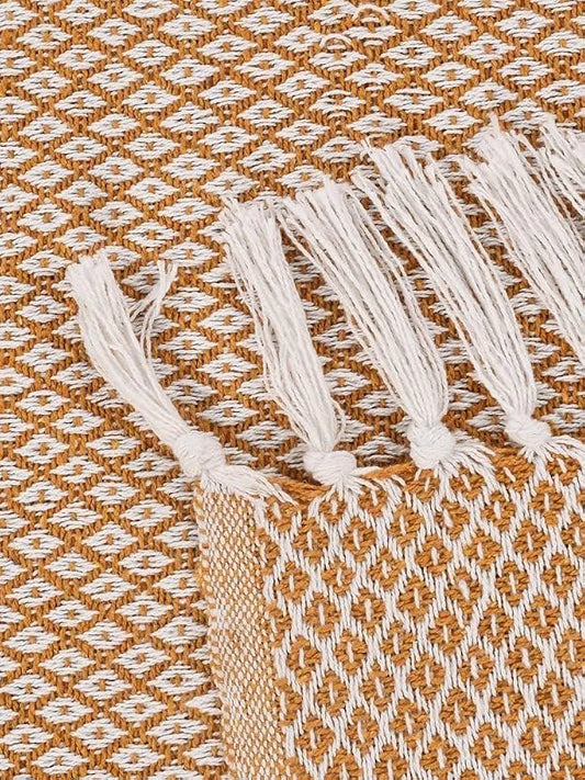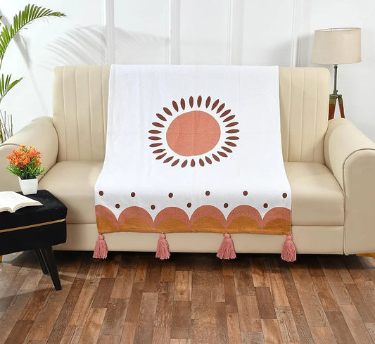 Sashaa World Printed Cotton Throw Colour Orange and Natural