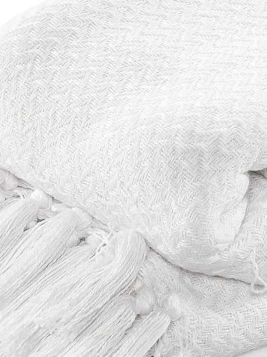 Sashaa World Cotton Chevron Throw Blanket Handwoven with Fringes Colour White