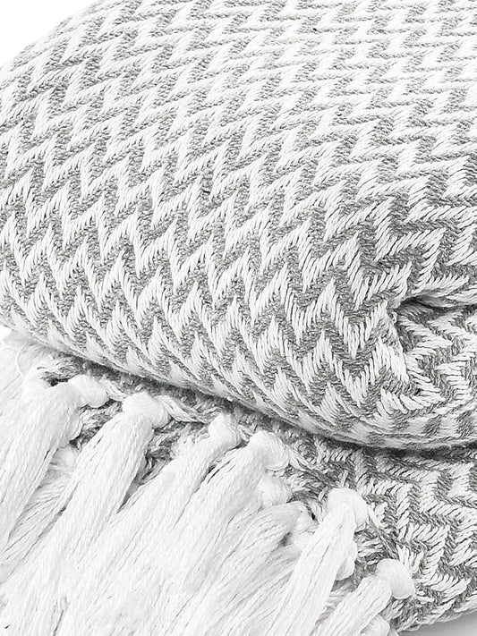 Sashaa World Chevron Throw Blanket Handwoven with Fringes Colour Grey