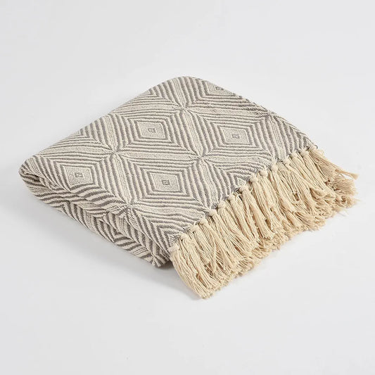 Sashaa World Diamond Weave Comfort Throw Colour Grey and natural
