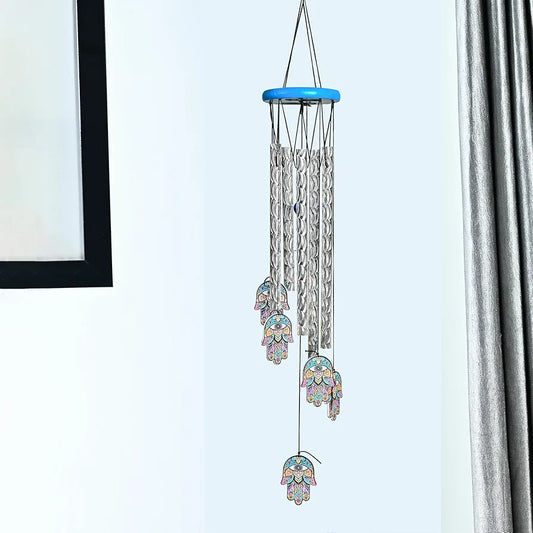 Wind Chimes for Balcony and Home 6 Hamsa Hand 5 Silver Pipe Wind Chime -014