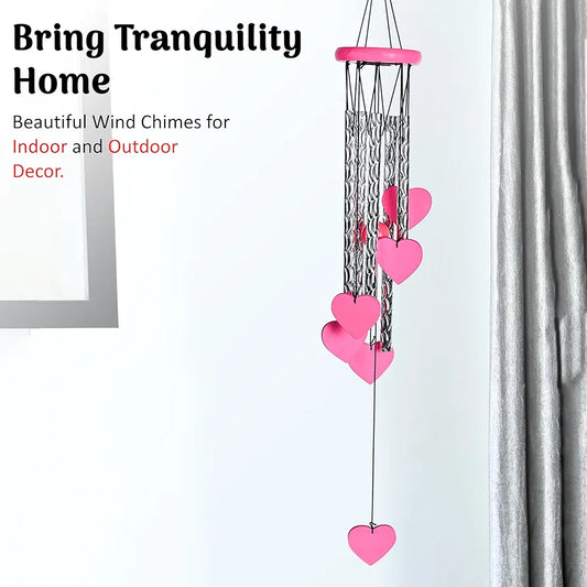 Hanging Wind Chimes for Home and Balcony Heart Shape Pink Wind Chime -018