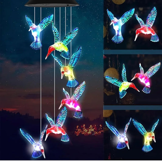 Taiga Humming Bird Solar Power Wind Chimes Color Changing Hanging Led Lights Multi Color