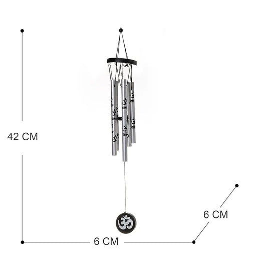 Tej Gifts Feng Shui Metal Wind Chime with Om Printed 5 Pipes for Positive Energy Silver Small