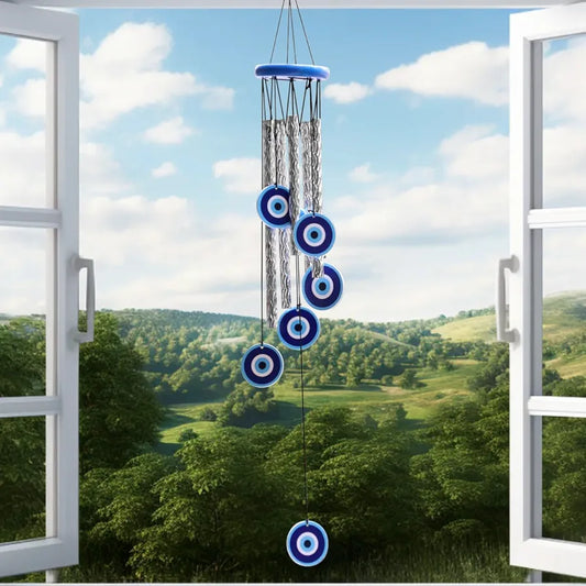 Shubhanjali Metal Evil Eye Wind Chimes 27Inch Turkish Wind Chime Blue