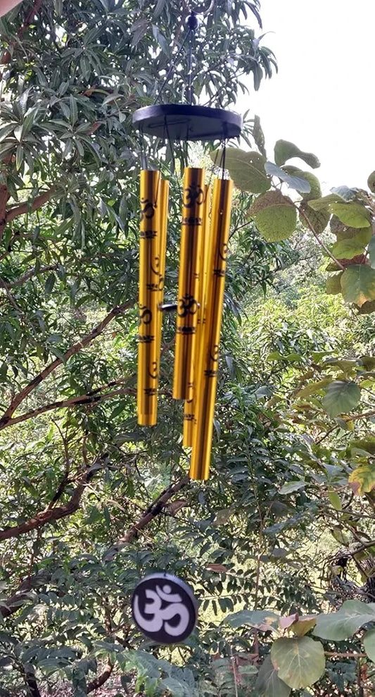 Tej Gifts Feng Shui Metal Wind Chime with OM Symbol – 5 Pipes Golden Hanging Bells