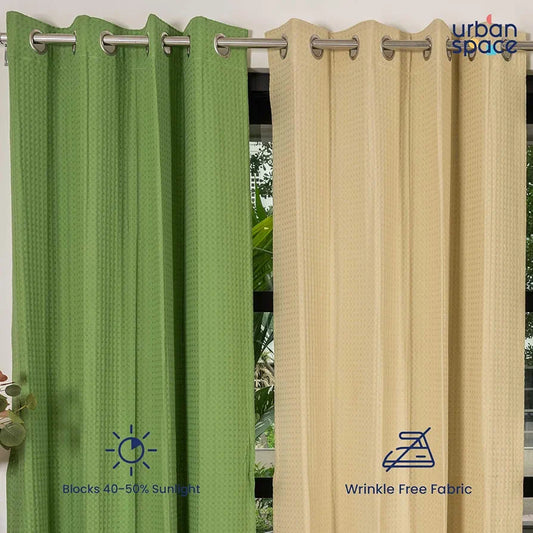 Urban Space Cotton Waffle Weave Curtains for Window Set of 3 Curtains 5 feet Long Room Darkening Tieback & Eyelets Included with Curtains Sage Green & Beige